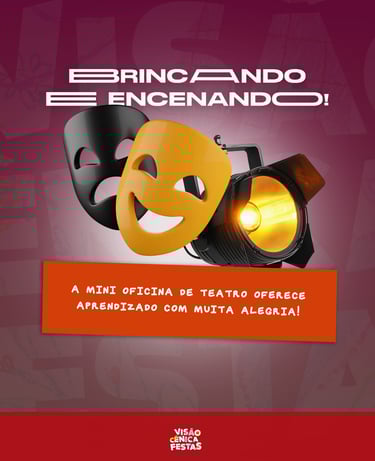 A Visão Cênica Festas oferece oficinas lúdicas e criativas pensadas para transformar festas e eventos em experiências inesquecíveis, unindo arte, imaginação e diversão para crianças e adolescentes.