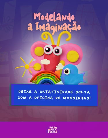 A oficina de massinhas convida os participantes a criar personagens, cenários e histórias com as próprias mãos.