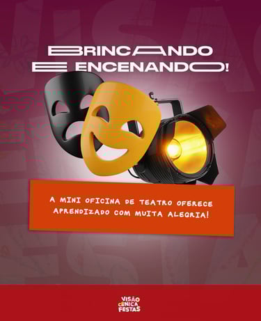 A Visão Cênica Festas oferece oficinas lúdicas e criativas pensadas para transformar festas e eventos em experiências inesquecíveis, unindo arte, imaginação e diversão para crianças e adolescentes.