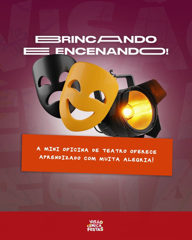 Uma mini oficina de teatro onde as crianças exploram jogos teatrais, improvisação e expressão corporal.